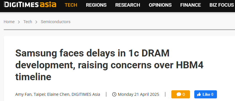 As a result, Samsung is now using 1c nm DRAM die and 4nm logic die for HBM 4 in an attempt to catch up to peers. However, the result for Samsung’s 1c nm is not satisfactory whereas rival SK Hynix had already achieved impressive yield with 1c nm. Note that SK Hynix will be using their mature 1b nm technology for HBM4 given their superior yield rate. Without success at 1c nm development, Samsung is likely to fall further behind in both DRAM and HBM. Unless yield rate at 1c nm can mature in time to more than 90%, it is unlikely for Samsung to catch up to SK Hynix at HBM4. In addition,