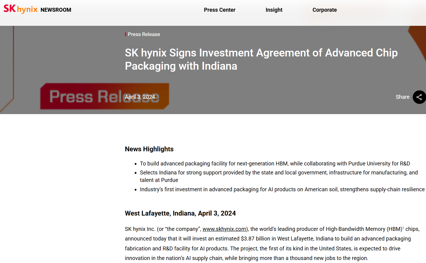 We can also deduce from the volume production date of the 2 new advanced packaging facilities that Micron and SK Hynix had invested in. Micron broke ground on a $7 billion HBM advanced packaging facility in Singapore in 2025 with mass production expected in 2027. SK Hynix plans to invest $3.87 billion in their new Indiana advanced packaging plant which will start production in 2028.