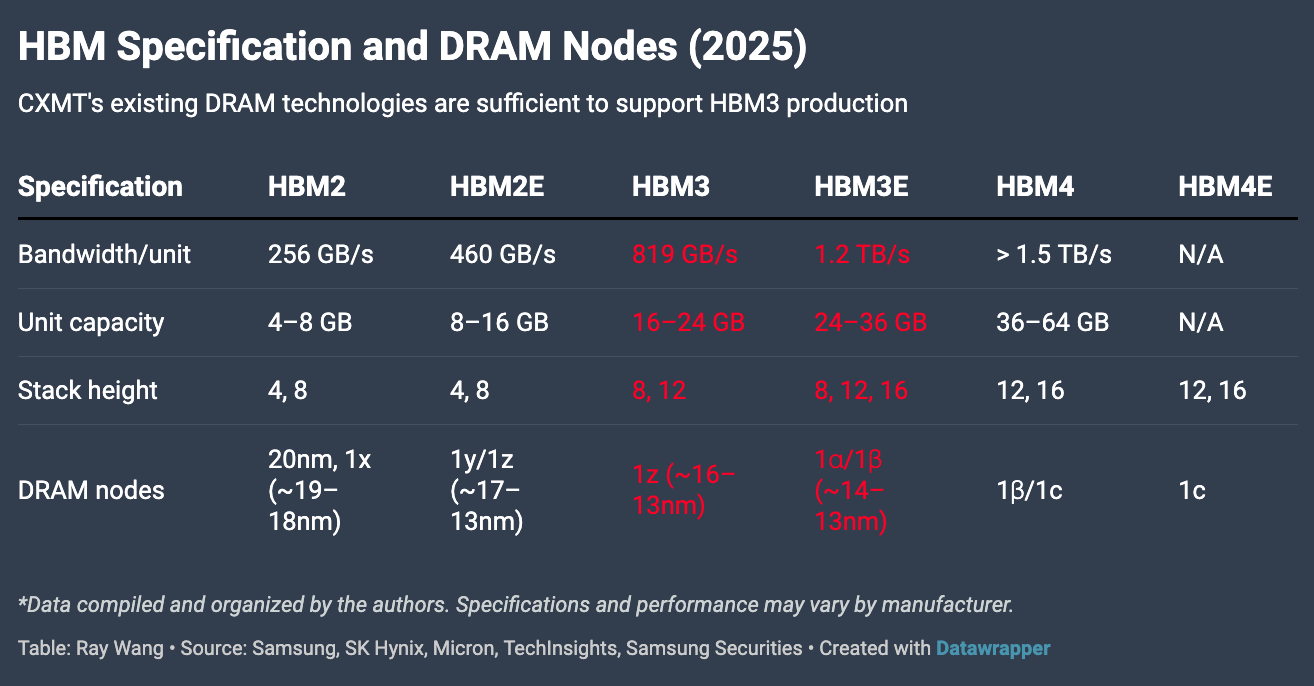 CXMT’s progress in HBM has been relatively slow. Prior to the surge in high-performance computing demand that began in late 2022, the company had not prioritized HBM technology, causing the company to fall behind the HBM development. Another reason, clearly, is the company's lagging development in DRAM, which underpins the front-end manufacturing for HBM.