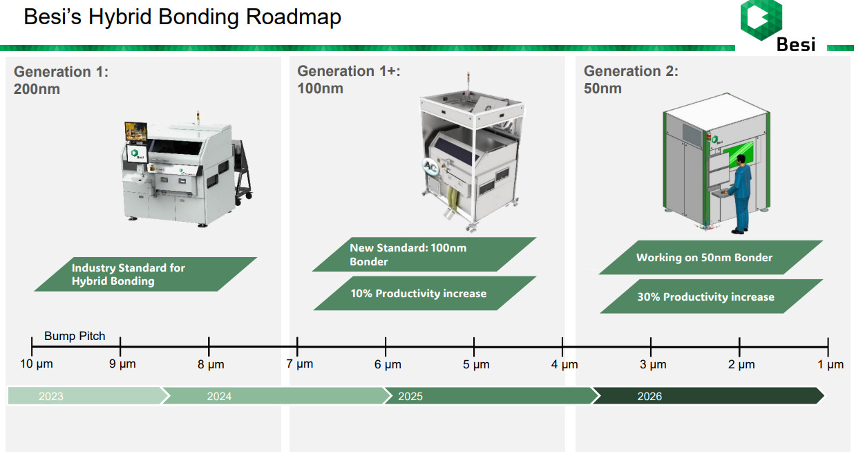 Currently, Besi is leading in the hybrid bonder race with the current 100nm accuracy hybrid bonder and upcoming launch of Generation 2 50nm precision hybrid bonder that achieves bump pitch of <4 um. For both ASMPT and KLIC, they are trying to delay the adoption of hybrid bonder with their next generation fluxless TCB tool (AOR TCB by ASMPT, APTURA™ FTC by KLIC) that allows placement accuracy of sub-1 um and <10um bump pitch.