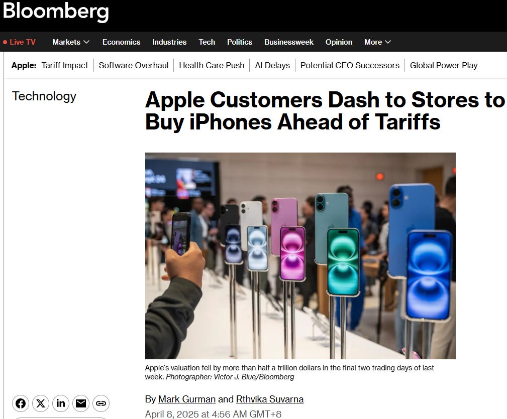 For corporates, the 90-day pause is the best opportunity for them to stock up on electronics before reciprocal tariff resumes or Section 232 tariff is implemented for semiconductor. Reuters reported that Apple had airlifted 600 tons of iPhones from India to beat the tariffs. Morgan Stanley raised their Q2 iPhone build by 10% to 45 million units, which is 5 to 15% higher than typical seasonality (destocking to prepare for the new iPhone model in September).