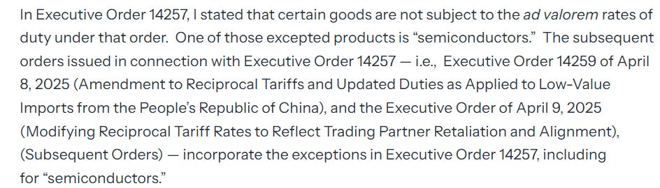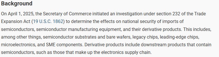 However, this is not over yet as the reciprocal tariff exemption is merely shifting these electronics product to be evaluated under a separate semiconductor tariff. On 14th April, it was revealed that the Department of Commerce has launched a probe on semiconductor tariff under Section 232 of the Trade Expansion Act of 1962. Therefore, it is highly likely that semiconductor and electronics products will be subjected to a future tariff irrespective of the deals that countries may have struck with President Trump. We know that as steel, aluminum and automotive have been subjected to Section 232 duties even if they are from Mexico or Canada.